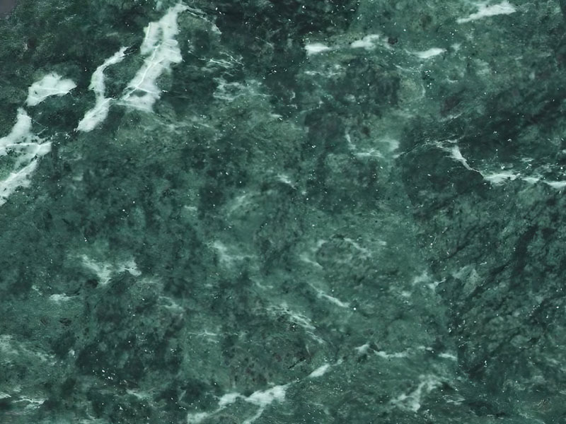 Das Erscheinungsbild des Verde Alpi ist geprägt von einem dunkelgrünen Hintergrund, der in verschiedenen Helligkeitsstufen auftreten kann. Kontrastierend dazu verlaufen unregelmäßig verteilte weiße und manchmal gelbliche Adern, die dem Stein eine lebendige und ansprechende Optik verleihen. Durch eine sorgfältige Politur lässt sich ein hoher Glanzgrad erzielen, der den chromatischen Kontrast zwischen dem Grün des Serpentins und dem Weiß des Kalzits noch verstärkt. Die visuelle Wirkung der Aderung ist ein wesentliches ästhetisches Merkmal und trägt maßgeblich zur wahrgenommenen Eleganz und Einzigartigkeit dieses Natursteins bei.